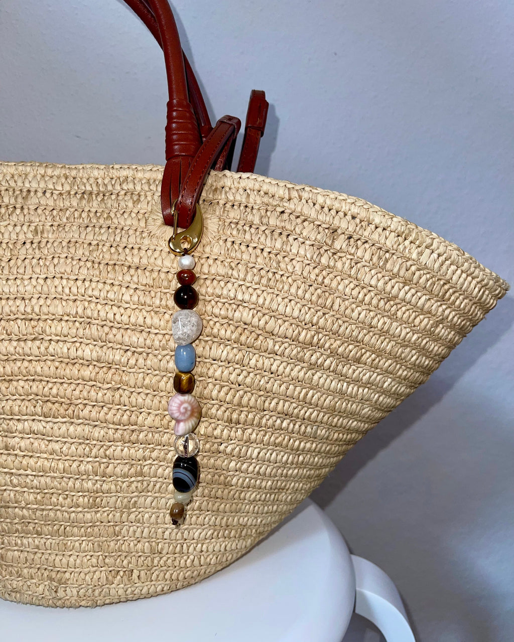 Our SUNSET Charm made of various gemstone beads in organic shapes and a ceramic shell is ready to give your bags an individual touch. Can also be used as a key ring pendant.