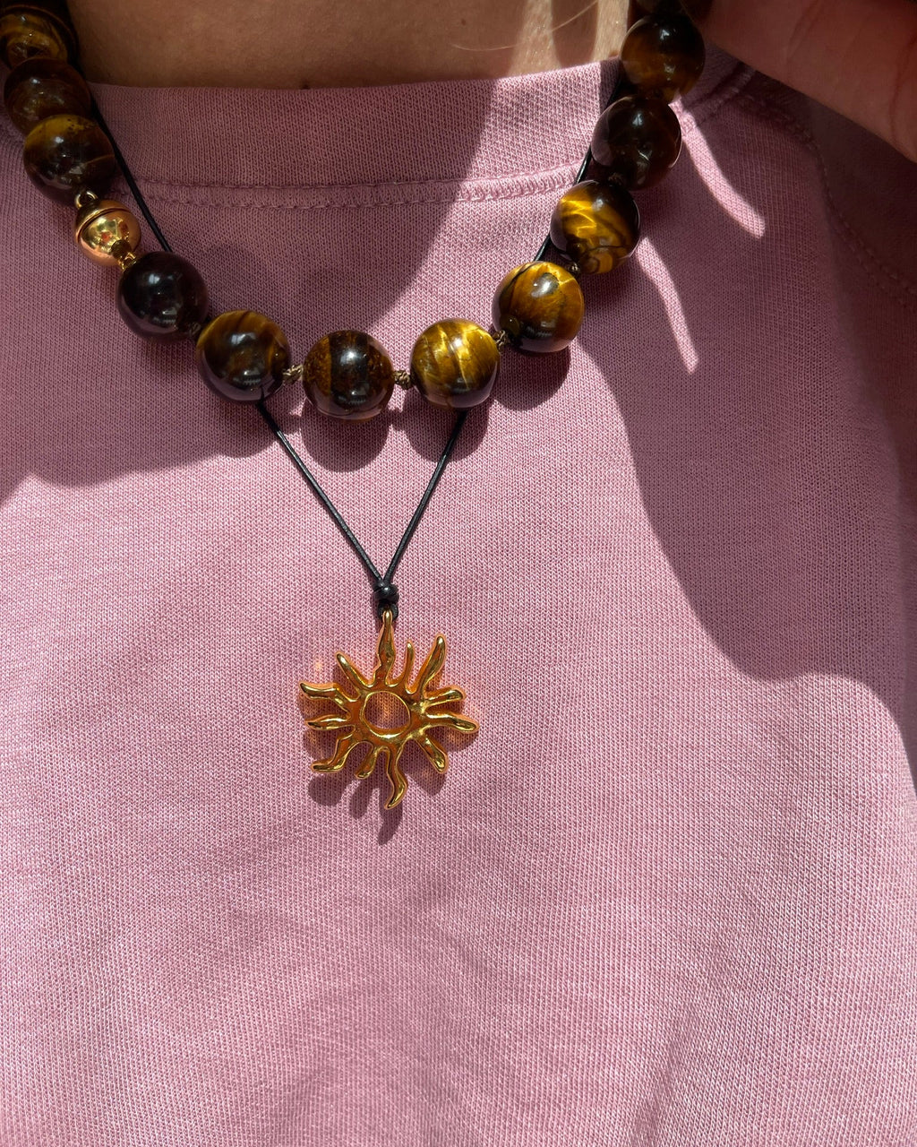 With its delicate, black leather cord, the SOLEIL necklace can be styled in several ways and flexibly layered with other necklaces.